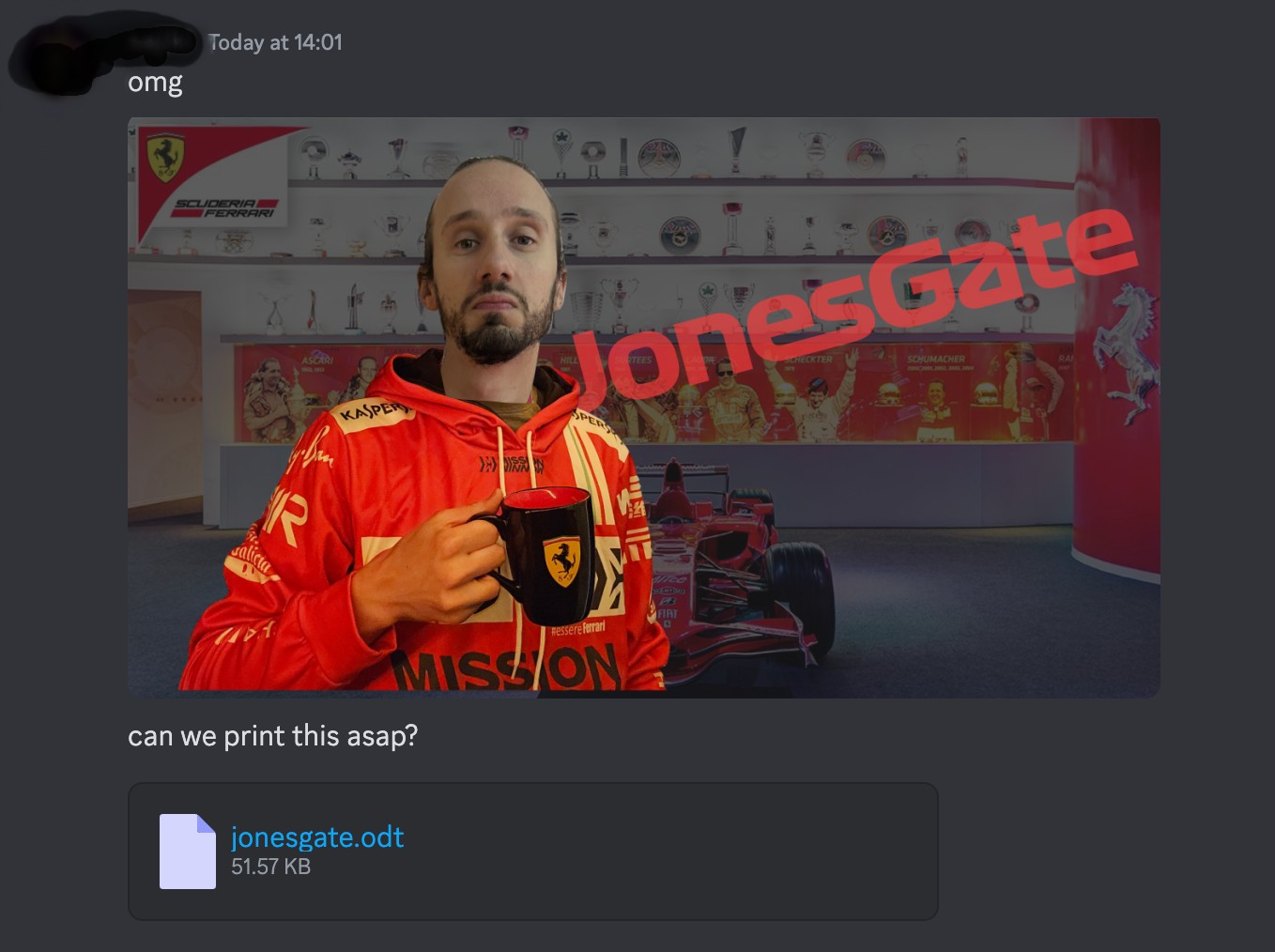 This photo was taken after a closed-door meeting between Jones and Ferrari leadership, according to our sources
