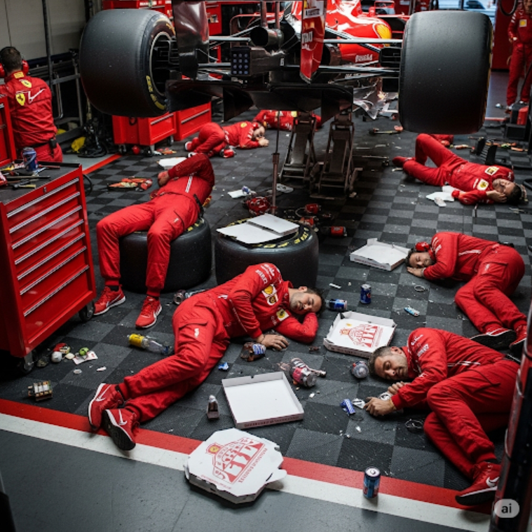 Ferrari points to evidence during Silverstone: where the pit crew refused to fix broken wings, forcing Havspiser to pit twice, after which the pit crew changed his tyres to HARDS during the rain! Solidly stopping any hope for a good position for Gatevold’s debut track appearance. And during Spain where the lazy pieces of shit in the Italian Pit Crew once again misplaced Gatevold’s front wing, claiming it got lost at the ufficio postale uccidimi!
